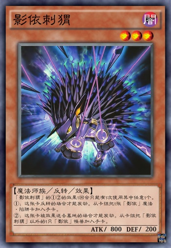 效果·反转:影依刺猬的①②的效果1回合只能有1次使用其中任意1个。 ①这张卡反转的场合才能发动。从卡组把1张影依魔法·陷阱卡加入手卡。 ②这张卡被效果送去墓地的场合才能发动。从卡组把影依刺猬以外的1只影依怪兽加入手卡。