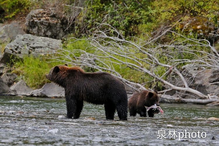 清静的河水流动着泛着白泡,喧闹异常,蔚为壮观。而此时,生活在食物链顶端的棕熊也出现了,饱食终日,尽情享受着大自然赐予的饕餮盛宴,为过冬储备脂肪和能量。