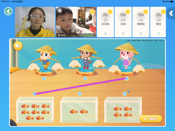 然后,同为直播课的豌豆思维和火花思维在课程内容设计上也存在差异。火花思维过度偏向趣味性,导致动画和游戏环节占比过多,会让孩子沉浸于游戏本身;豌豆思维的老师会根据小片段的动画情景抛出问题,引导孩子观察思考,培养孩子的分析能力和语言表达能力。
