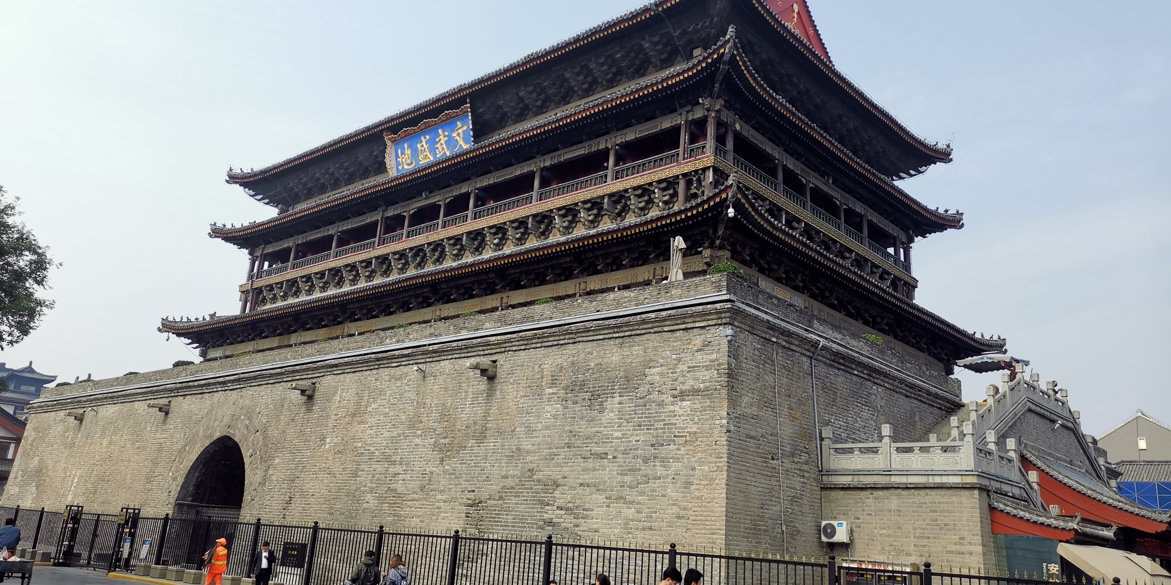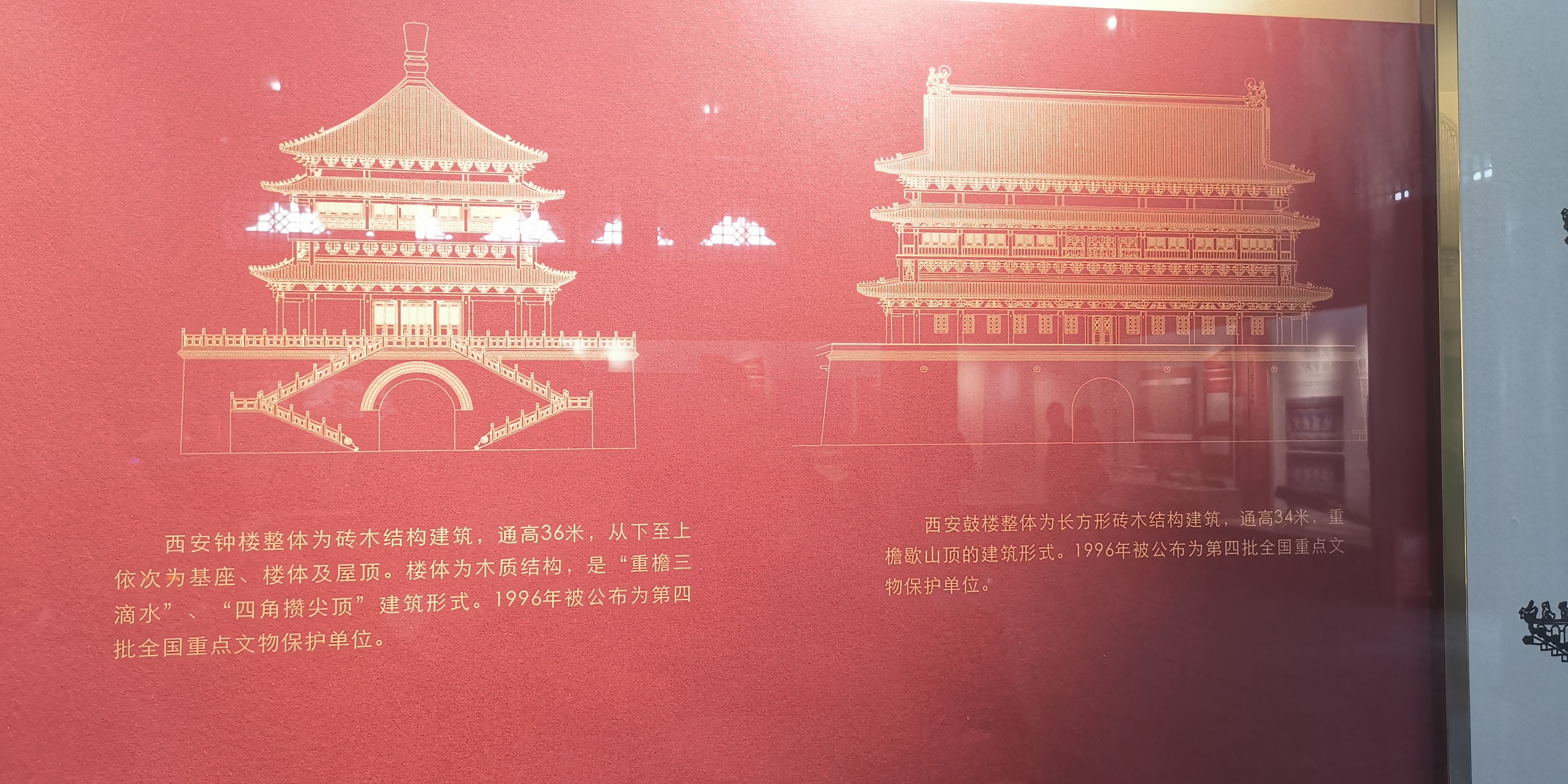 西安的标志性建筑物,两座明代建筑遥相呼应,蔚为壮观。晨钟暮鼓是因其清晨报晓以撞钟为号,夜暮则以击鼓报时。因而,钟楼建于东侧,而鼓楼立于西侧。这也符合古时大臣站班文官列东,武将站西之秩序。故此,西安市民有“钟为文,鼓为武”之俗语。