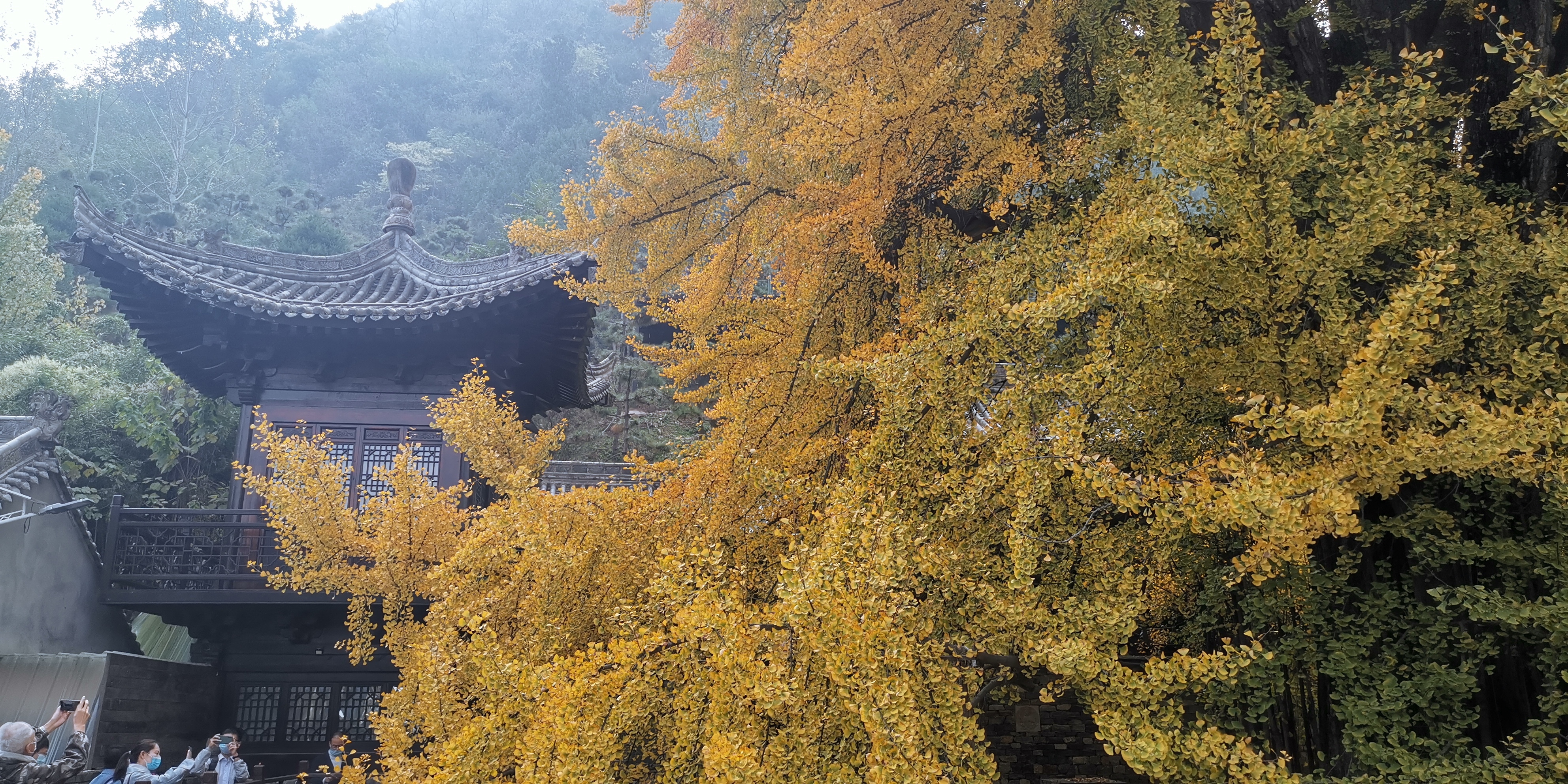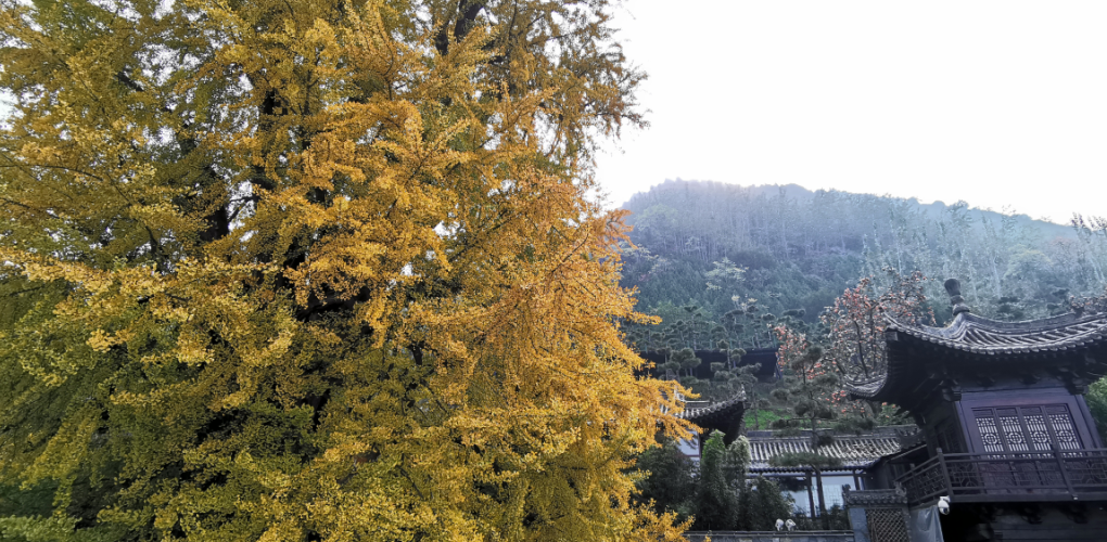 秋末冬初,禅寺内的古银杏树满目金黄,落叶宛如金毯,吸引着众多游客前来参观游览。有诗云:觅来南山枯木枝,燃起薪火煮清茗;一盏孤香味不差,只缘泉深源流长。