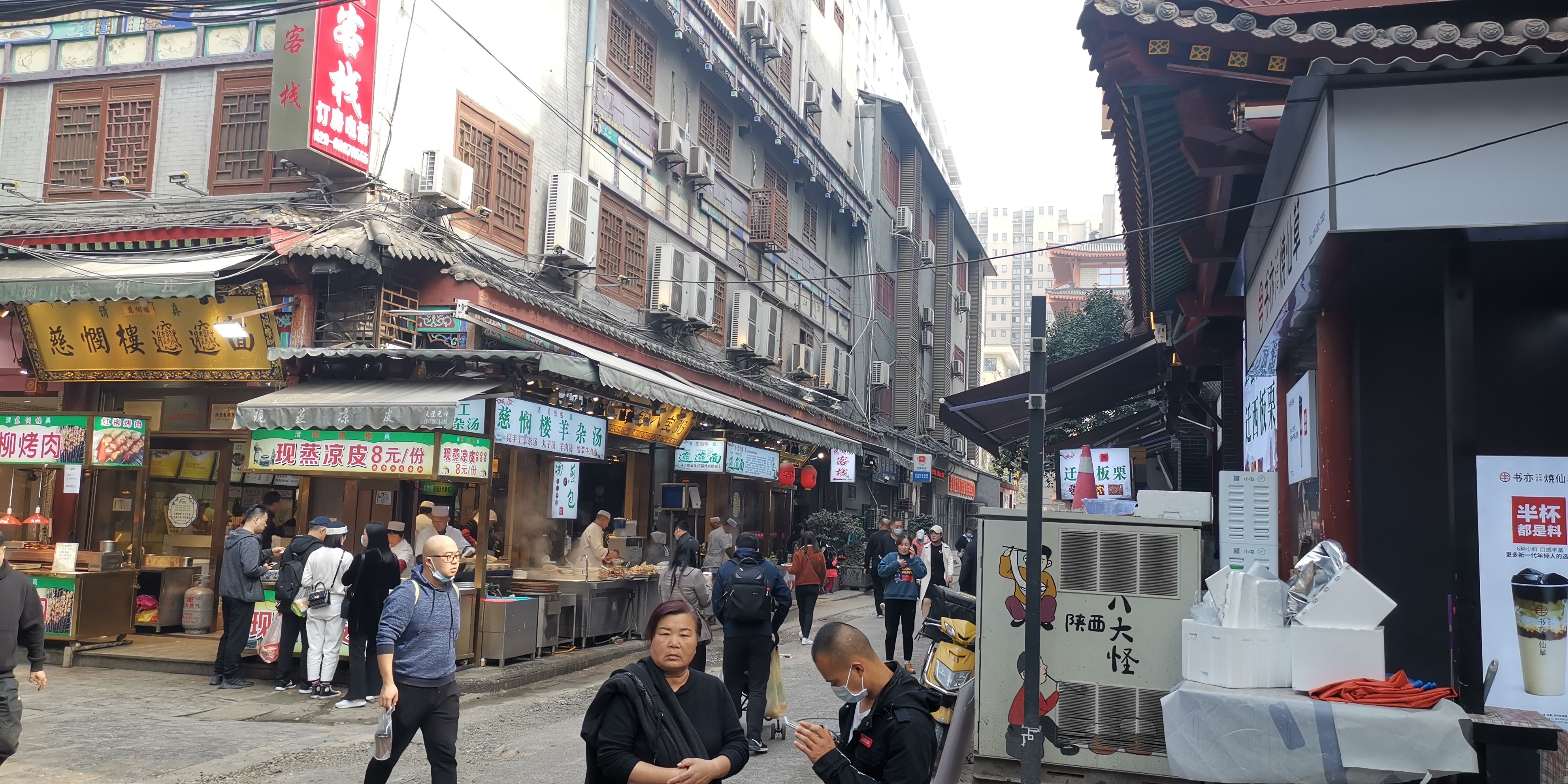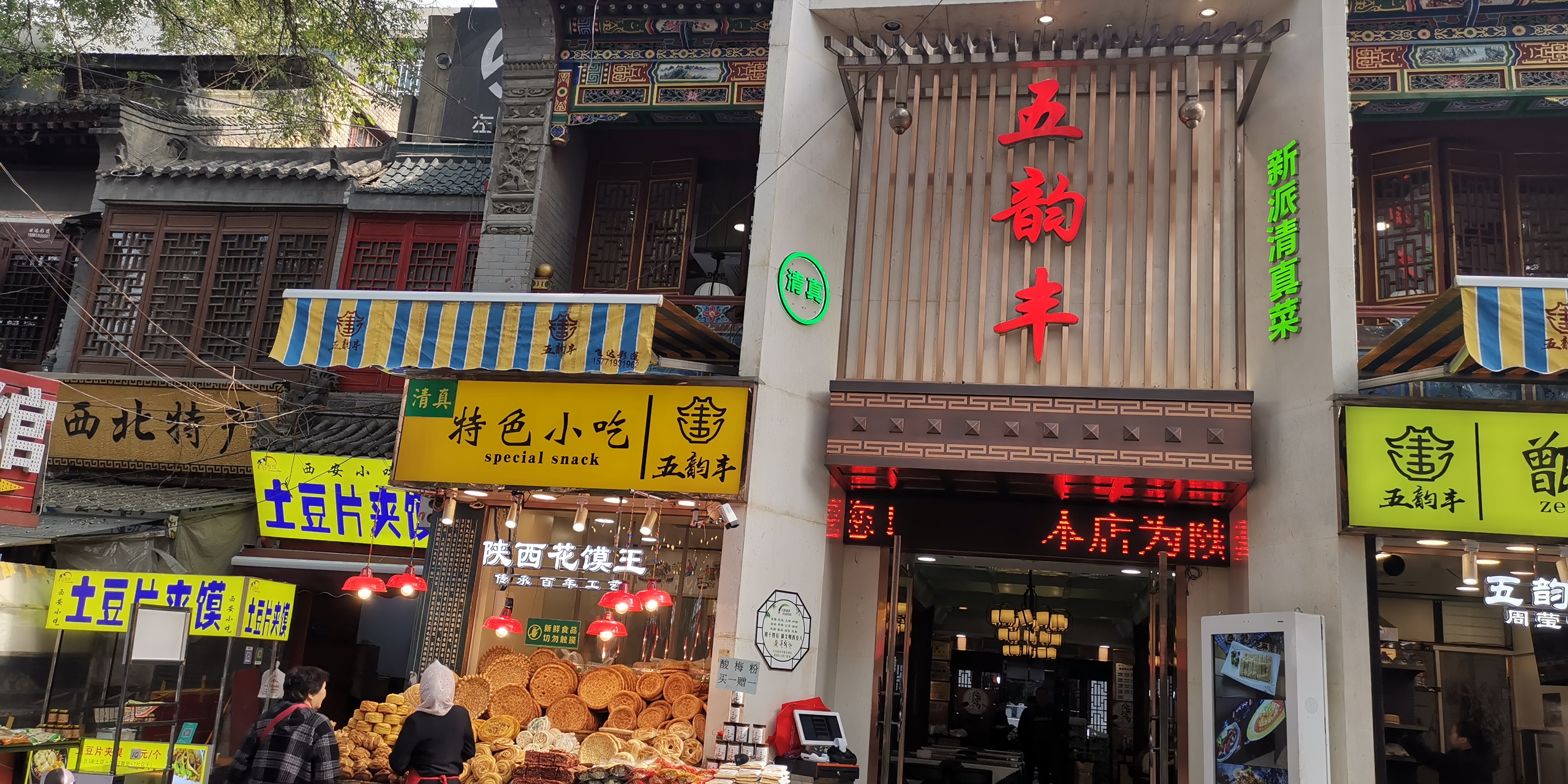 了解一个地方最便捷的方式,品尝当地特色美食,融入浓郁的接地气的烟火气息。鼓楼北侧,是具有典型西北风情,赫赫有名的回民街。沿街两侧尽是密集的当地特色小吃食肆,这些厨师手艺人擅长小吃制作,且用料考究,制作精细,酸甜咸辣荤素搭配,品种众多:腊牛羊肉、烩羊杂、粉蒸羊肉、羊肉饼、糊辣汤、凉皮、米皮、擀面皮、羊肉水饺、韭饼、酸汤水饺、灌汤包子、牛肉拉面、甑糕、羊肉臊子饸、岐山面、biangbiang面……这些清真食品是很多人耳熟能详的陕西名吃。让人眼花缭乱、鲜香诱人、令人垂涎的各式小吃应有尽有……