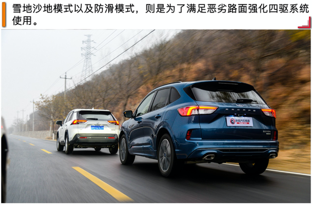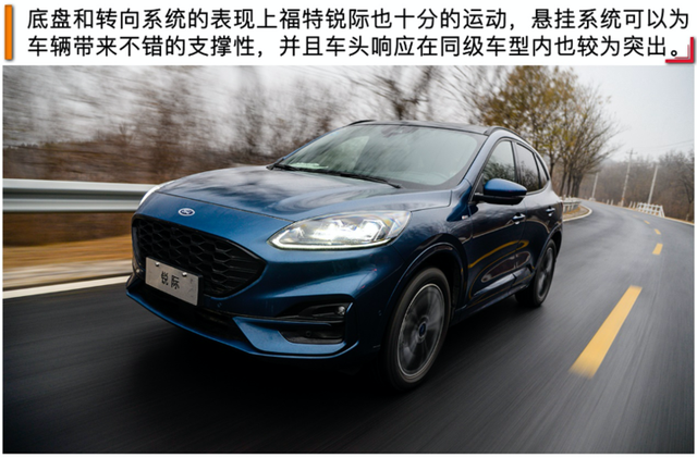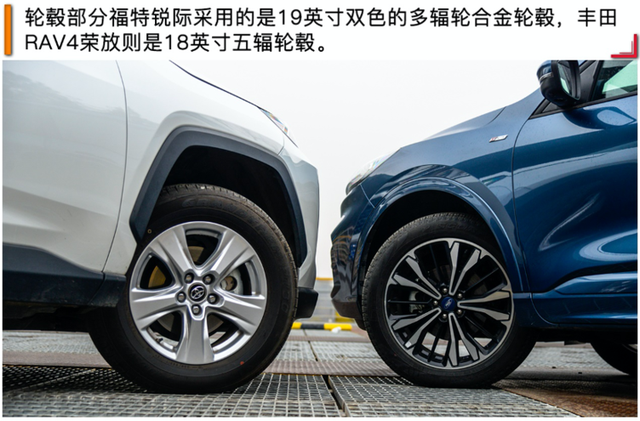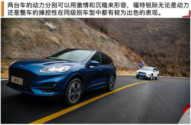 底盘和转向系统的表现上福特锐际也十分的运动,悬挂系统可以为车辆带来较为不错的支撑性,并且车头的指向性和响应在同级别车型里也较为突出,TNGA架构下的RAV4荣放虽然由于重心降低的原因,在操控性上有一定的提升,但因为悬挂系统依旧是采用了偏舒适性的调校,经过起伏路段时悬架的弹跳动作很轻柔,所以操控性的表现上还是会稍逊一筹。
