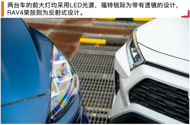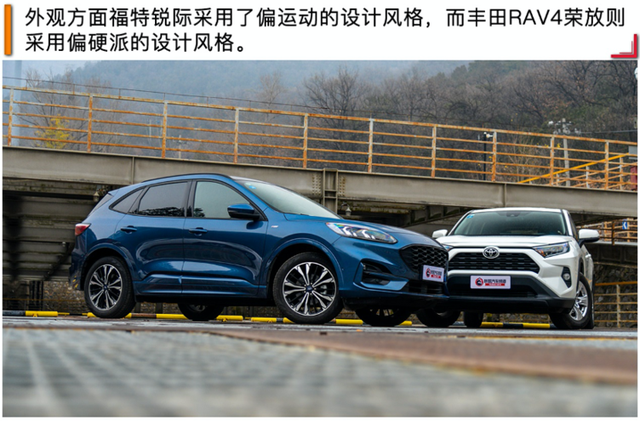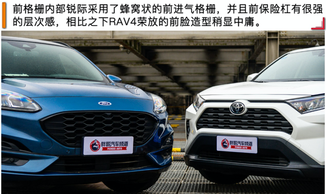 福特锐际和丰田RAV4荣放作为各自品牌的当家车型,两台车都有着很强的关注度,外观方面两台车都是采用了家族式的设计语言,并且也都有着十分鲜明的个性。单是从造型上来看福特锐际的蜂窝式前进气格栅以及LED光源的大灯要比RAV4荣放看起来有更强的运动感,而RAV4荣放见棱见角的设计则会更为稳重一些。