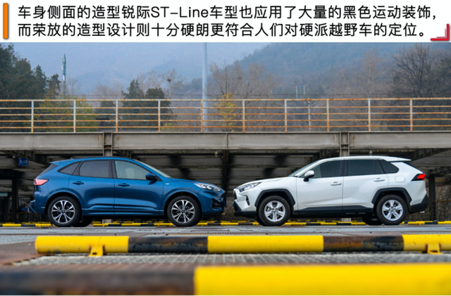 车身侧面的造型锐际ST-Line车型也应用了大量的黑色的装饰,再加上侧面俯冲的腰线也使整体看起来更具运动感,而荣放的造型设计则十分硬朗更符合人们对硬派越野车的定位。车身尺寸上锐际的长宽高分别为4581/1882/1688mm,轴距为2710mm,荣放的长宽高分别为4600/1855/1680mm,轴距为2690mm,从数据上来看锐际的车身尺寸会更具优势。