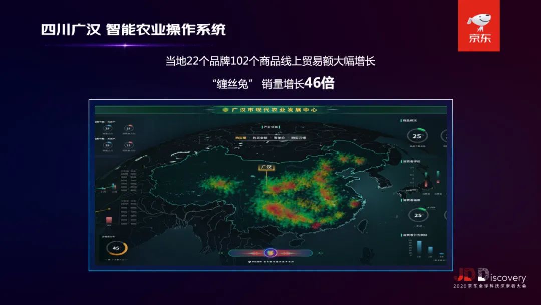 不到一年时间,在这套系统的助力下,当地22个品牌102个商品的线上贸易额实现大幅增长。其中,广汉特产“缠丝兔”品牌通过大数据反向定制,提升了产品溢价,同时销量增长了46倍。
