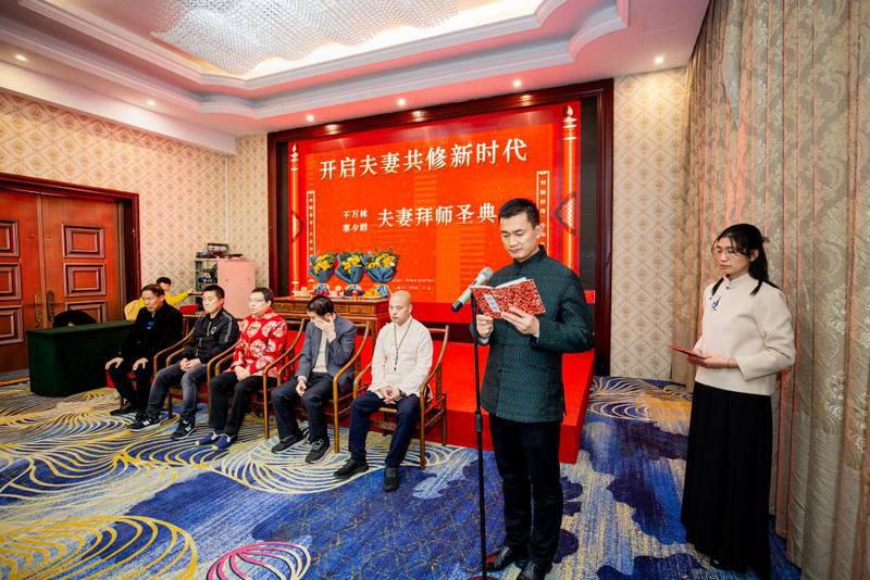 作为夫妻共修的践行者,王万林先生在拜师圣典现场表示,在物质文明极大丰富的今天,我们迫切需要精神文明的同步提升,随着时代发展,国家已经将精神文明建设提升到了和物质文明建设同样重要的位置,人们开始快速回归到中华优秀传统文化的传承与发展之中。尊师重道,尊道贵德则是我们中华优秀传统文化的集中体现。二十多年的从商经验告诉自己,回归“师道文明”是我们当今社会急切需要的,身心康泰、家庭和谐是我们这个时代的价值引领,也是我们事业成功的关键,俗话说“家和万事兴”,这不仅需要夫妻在思想观念上做到“正知正念”和“同频共振”,也要求夫妻双方同时拥有真正健康的身体,古有全真马钰孙不二的故事千古流传,今天与妻子举办以“开启夫妻共修新时代”为主题的拜师圣典,正式拜在恩师冯成平先生门下,这就是我们站在这个时代的背景下,对中华优秀传统文化,对“师道文明”的一种回归与传承。