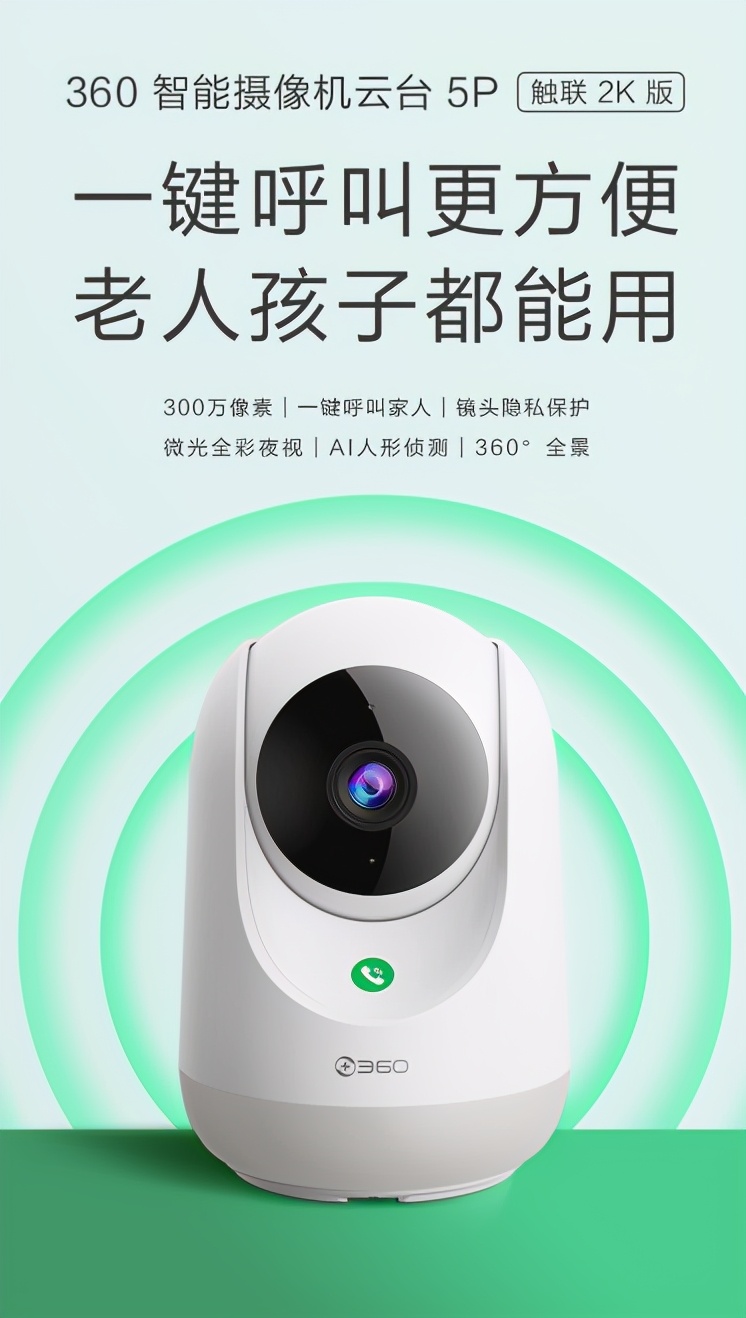 其实,目前市场上已有部分科技产品率先走在智能终端“适老化”的前列。为方便老年人使用智能化产品和服务应用,360智慧生活集团此前推出了一款操作简单的智能摄像机产品——360智能摄像机云台5P触联2K版,其独有的一键呼叫家人等功能,可以轻松解决困扰很多家庭的老人“使用难”问题。