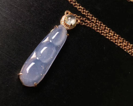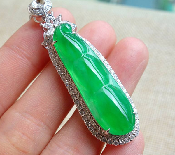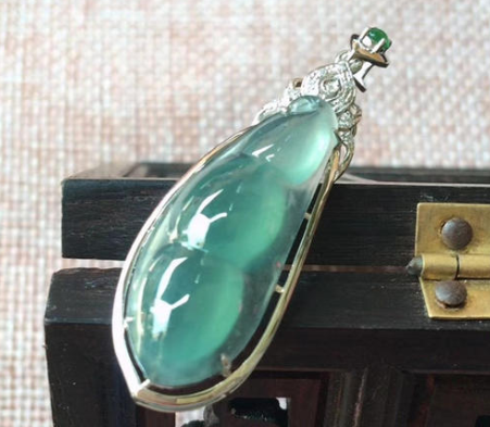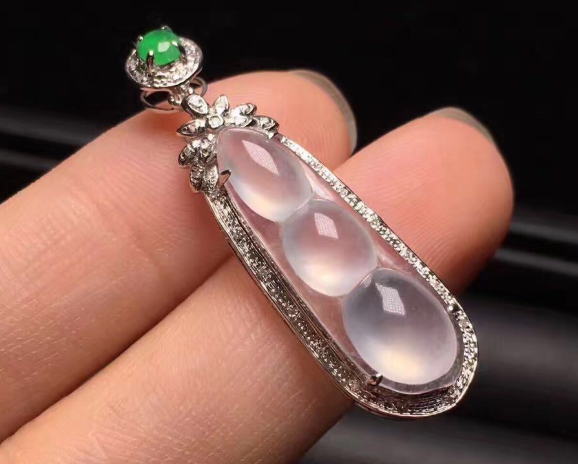 翡翠四季豆的弧形造型要求圆润光滑,这样才能最大限度地发挥福豆的饱满和滋润,整体造型匀称、比例大小要协调,四季豆架大小适当,小号的四季豆吊坠适合配以18k白金扣,这样的组合会变得精致,连细节都被处理好了,才能淋漓尽致地表现豆荚的生命力。
