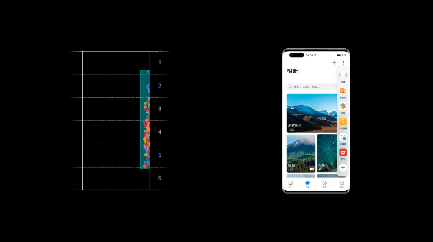 除此之外,为了研究人们使用手机的舒适区,华为还采用“肌电仪”,测试者在使用手机时,手部肌肉群会贴上肌电片,当手部执行相应操作时,这个设备可以记录下肌肉的电信号,形成“积分肌电”指标,以此绘制出操作时肌肉疲劳程度的实验图表。结合这样的数据结果,EMUI11把侧边智慧多窗的调出布局放在2-5这样相对容易操作的热区,而呼出后的下一步操作功能,也基本被放置在了这个区域内,带来最舒适的实际体验,是真的“旦用难回”。