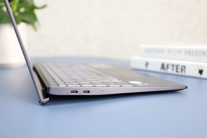 更长的续航时间也是英特尔Evo平台验证之一,所以这款笔记本内置52Wh锂电,续航可达12小时办公情景模式,并且附带更加小巧的65W Type-C 适配器,支持快充技术,让旅行更轻松愉快。