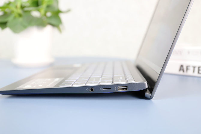 接口方面,这款笔记本搭载了双Thunderbolt 4接口,具备40Gbps的传输速度,可以连接多屏幕使用环境,以及支持PD快速充电。此外,还配备了全新的UHS-Ⅲ高速Micro SD读卡口,可大幅缩短传输超高画质影像素材的时间。机身的右侧还有一个3.5mm音频接口和USB 2.0接口,没有配备USB3.X接口,略显遗憾。