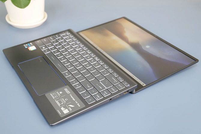 尊爵 Prestige 14 EVO在机身的设计上有个很贴心的地方,就是转轴采用了翘跟设计,当开启屏幕时能顺势将键盘增高至更佳的使用角度,这对于需要大量输入文字的用户来说十分方便。