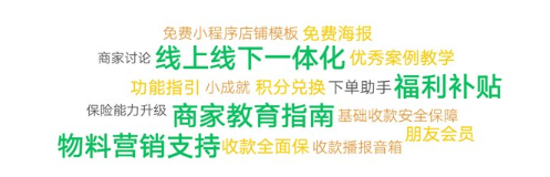 支付后领券或会员积分,给店铺带来复购能力;支付即会员,给商家打造私域流量打好了良好的基础。支付即服务,消费者支付后可以添加店家微信等;朋友圈广告,商家每月收款笔数可以兑换朋友圈广告金,每天十几笔即可;物料激励,收款可以兑换很多硬件收款设备等;