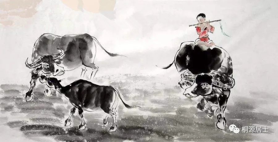 稚气未除,徜徉于江边的仙童,表面上只顾埋头牧牛,是那样的与世无争,不引人注意,实际上是在观时待机,一试身手。他的胃口大得惊人,既要静态的仓囷珠宝,也要不断递增的流动之财。他相中的,是滚滚而来的不竭财源。而最为重要的是,龙力深厚的牛形地,又具有财通四海的资格与豪气。