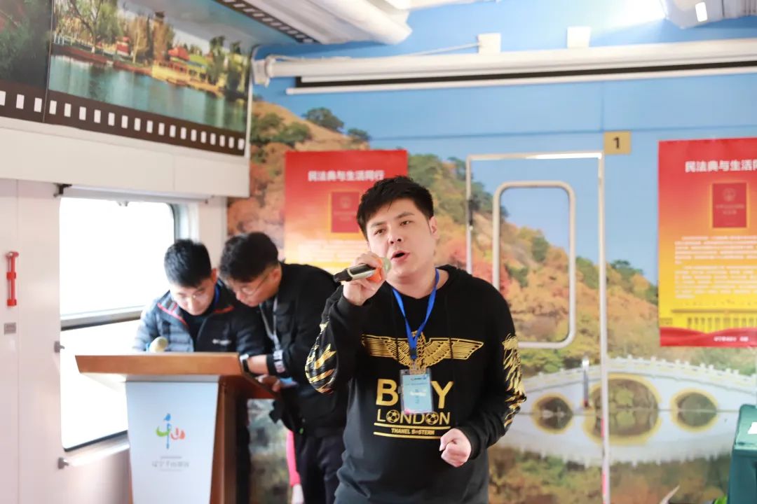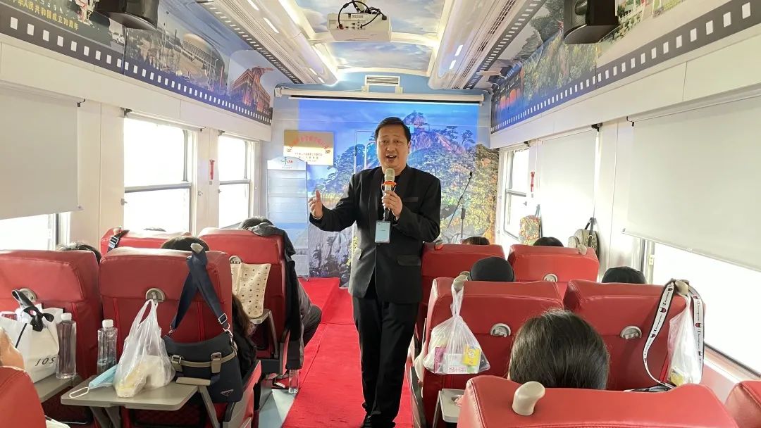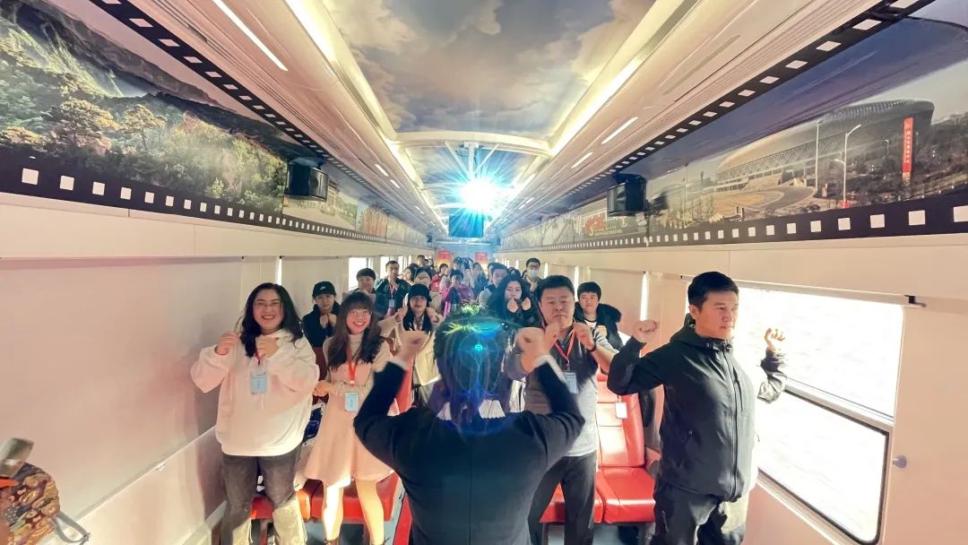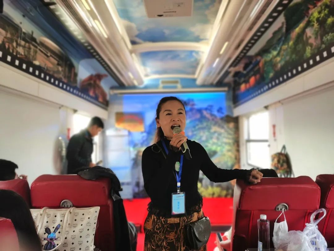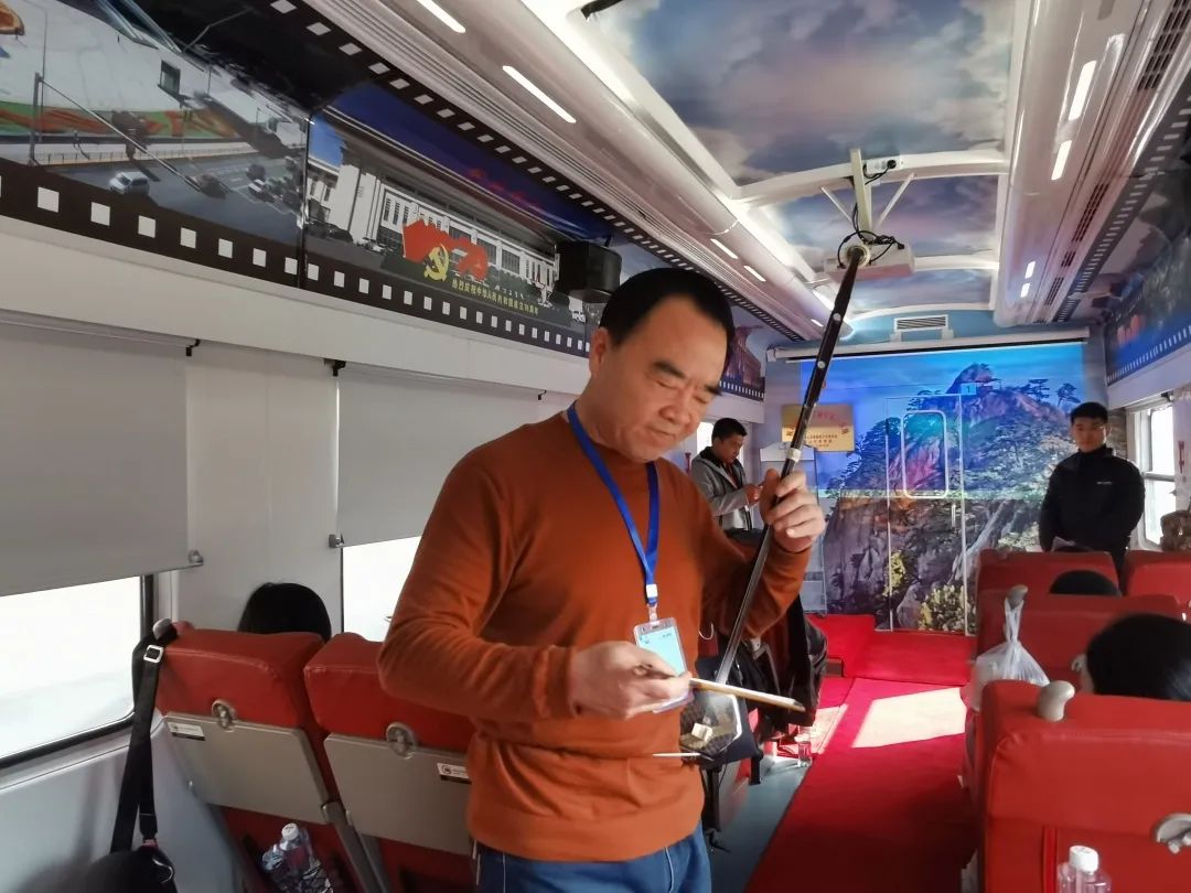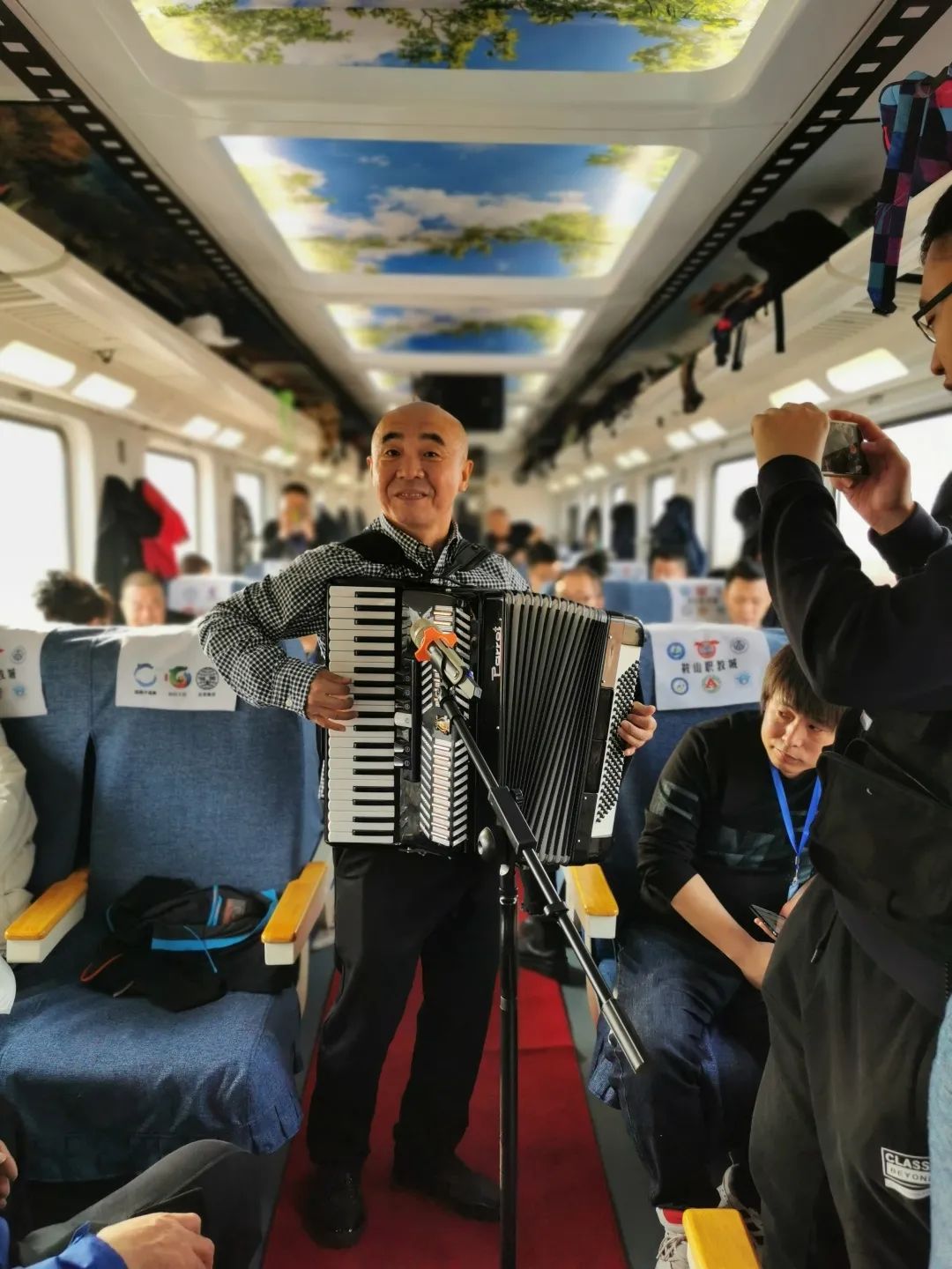 列车行进途中,鞍山市文联的演员们为考察团表演了精彩的文艺节目,独唱、京戏、手风琴、二胡、评书、快板等节目深深吸引了大家的目光,车厢一片欢声笑语。来自汤岗子康复医院的医生们还带领考察团成员一起做理疗保健操,为大家缓解旅途中的疲劳。