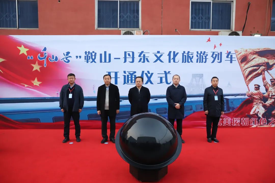 列车出发前,“千山号”鞍山—丹东文化旅游列车发车仪式在鞍山火车站1号站台隆重举行。鞍山市高新区党工委书记、管委会主任、鞍山市千山风景区党工委书记、管委会主任范静国、辽宁千山旅游集团有限公司党委书记、董事长李松涛、沈阳铁道国际旅行社(集团)有限公司运营中心主任江岸峰、鞍山市高新区党工委副书记、管委会副主任庞升亮、辽宁千山旅游集团有限公司总经理助理王志等相关领导同广大党员共同见证了旅游专列的开通。