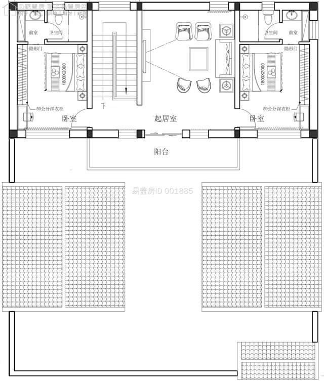 主房二层东西两侧共设置2间卧室套房,搭配独卫使用,功能齐全;中部的起居室向外延伸出阳台区域,满足业主家日常晾晒、休闲需求。