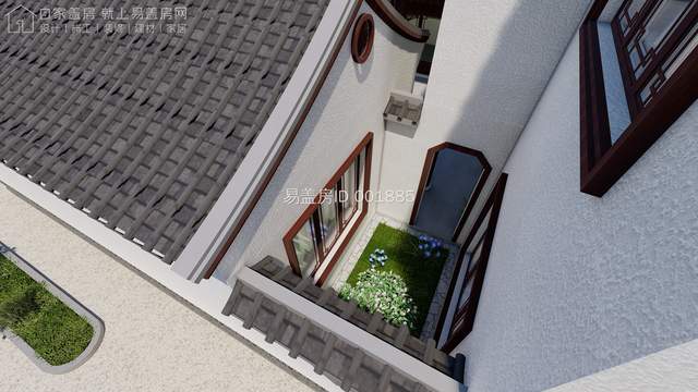 庭院内的绿植景观为建筑整体增加自然气息,后期也可摆放户外家具,作为品茶、待客或者聚会的活动空间。