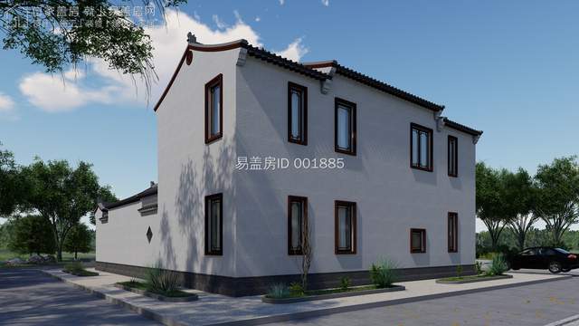 顶层的阳台设计既可欣赏乡村美景,又满足业主家日常的活动、晾晒所需。院门选择简单、大方造型的门楼样式,与建筑整体风格十分契合。