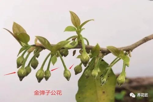 2、最简单和直接的方法是通过花苞来分辨,雄性的金弹子开花很少,花朵的花萼片没有张开是包住花朵的。雌性的金弹子开花多,花朵有4片张开的花萼片。
