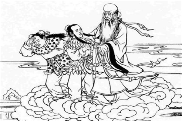 就在孙大圣挥舞着金箍棒,要棒杀仙鹿时,南极仙翁驾乘祥云,赶来营救。