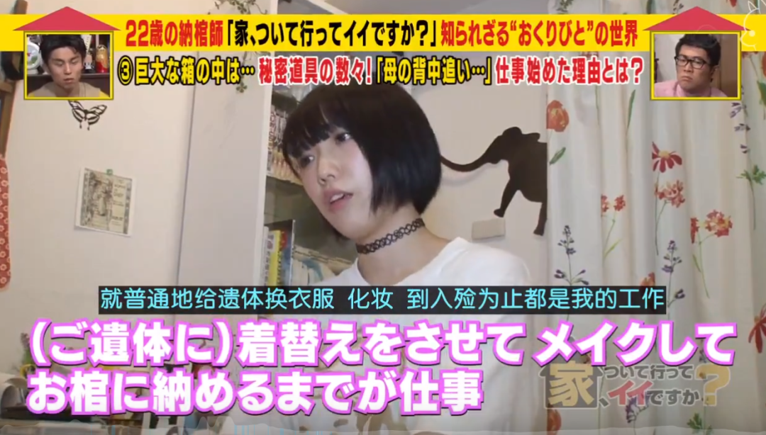 日本一档综艺节目《可以跟着去你家吗》,曾经偶遇到一个22岁的女殡葬师,她在同为入殓师的母亲的影响下,也做起了入殓师的工作。