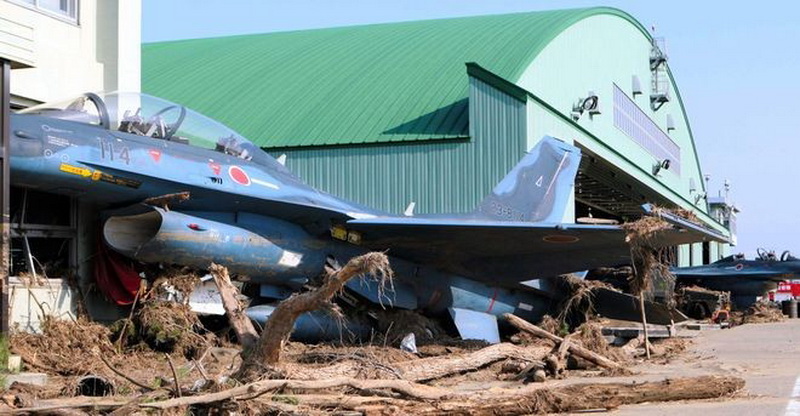 海啸后的清理和初步评估中有6架为可修复状态,每架费用要50亿日元。由于F-2生产线已经关闭,无法再生产新的飞机,日本忍痛又增加了修复数量。2015年2月,首架被修复的F-2B试飞。至2018年2月,最后一架修复的F-2B返回松岛基地。此次海啸中损坏的18架F-2B最终有13架被修复,5架报废。