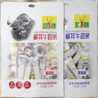 青海可可西里实业开发集团生产的藏牦牛奶贝奶条,是将牦牛奶中大量水分除去,只保留住其主要营养成分,如蛋白质、钙、锌、维生素A等,在加工过程中保存了牛奶全部精华,不添加其他东西的奶制品。奶贝中的乳酸菌及其代谢产物对人体有一定的保健作用,有利于维持人体肠道内正常菌群的稳定和平衡,防止便秘和腹泻,增进人体抵抗疾病的能力,增进代谢加强活力,保护眼睛健康,并保持肌肤健美。
