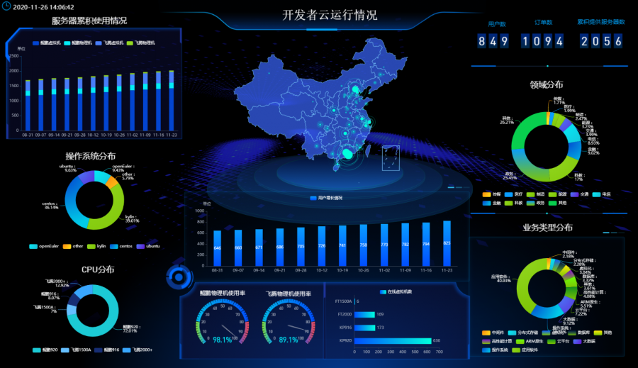 IT之家获悉,“鹏城生态”开发者云作为银河麒麟云在国产取代生态构建中的典型案例,是方便全国企业、个人用户在国产 ARM+Linux 基础环境上做开发、迁移适配而建设的公益性国产计算平台。开发者云于 2018 年 4 月基于银河麒麟云 V4 版本开始建设,逐步建成由鲲鹏 916、920 系列和飞腾 1500A、2000+、2500 系列服务器,银河麒麟、openEuler、CentOS、Ubuntu 等操作系统组成的目前国内规模最大、种类最全的国产 ARM+Linux 计算平台。