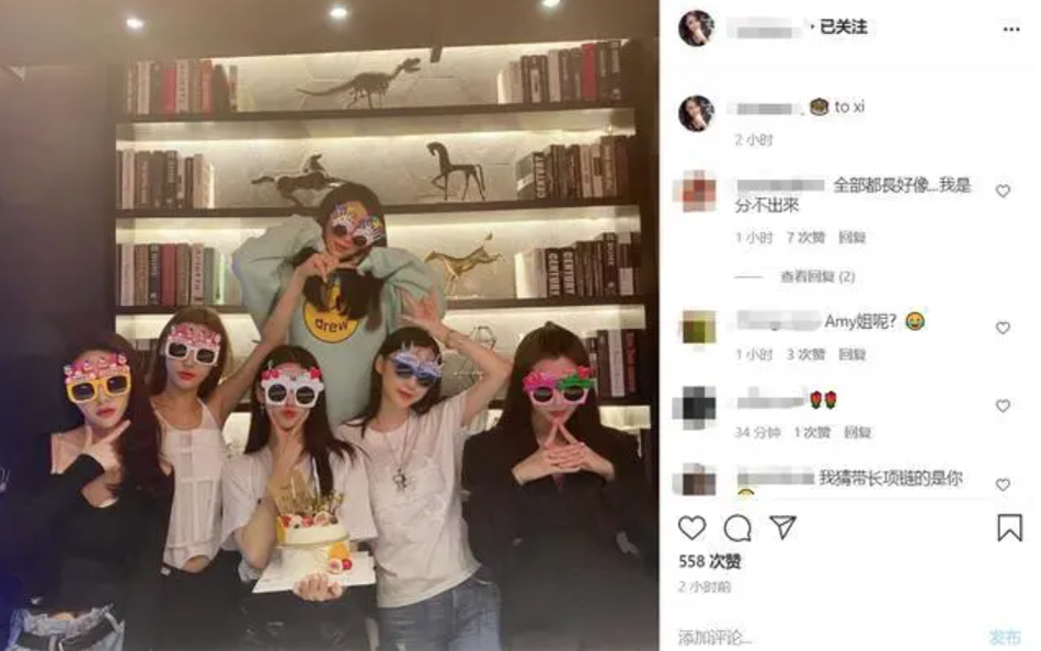 11月29日,潘玮柏的妻子luna宣云在社交平台上晒出了姐妹团聚会照,并配文“to xi”。