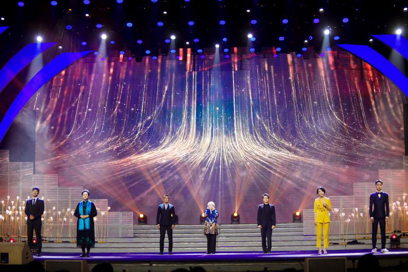 “人民,不是抽象的符号,而是一个个具体的人。他们有血有肉,有情感,有爱恨,有梦想,有遗憾。他们,是戏剧创作的源泉。他们,也是剧本里的,一串串文字。”唯有生活在生活当中,才能将生活,带进戏里,让戏,成为生活。舞台上,涂松岩与老、中、青三代演员一同朗诵《我是演员》,共同以大型原创情景朗诵的形式,表现中国电视事业中的榜样力量和传承精神,以及一代代演员紧跟时代、不忘初心、忠于艺术、忠于观众的职业素养和爱国情怀。