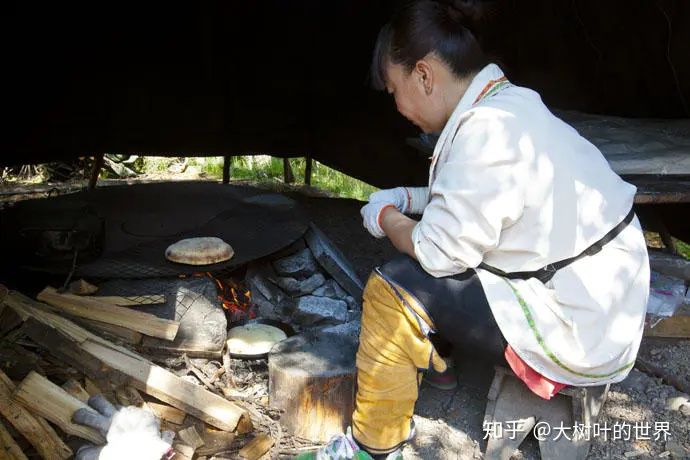 列巴是敖鲁古雅鄂温克族的传统主食,用驯鹿奶和面后自然发酵。 在平底锅里烙熟,敖鲁古雅鄂温克族制作的列巴酥脆暄软,入口香甜。夏季可存放一周,冬季可存放一个月。它们的样子像厚厚的锅盖,有20厘米厚。鄂温克人出门打猎时,一天带一个就够了。
