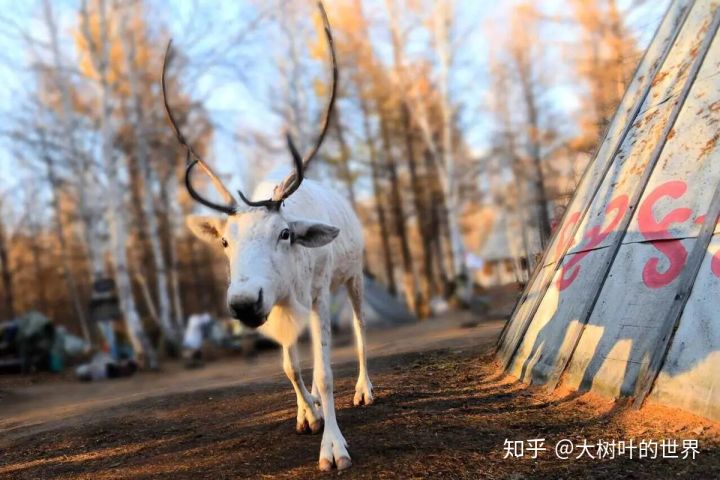 驯鹿是种带有童话色彩的动物,圣诞老人就是乘坐驯鹿拉的雪橇去给世界各地的小朋友送礼物。这种林中精灵神秘而优雅,以白色和褐色为主,无论雄雌,头上都长着华丽的鹿角,它们的腿长有力,善于穿越森林和沼泽地,中国狩猎是鄂温克人的主要生产和交通运输工具,被称为“森林之舟”。