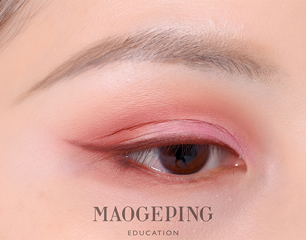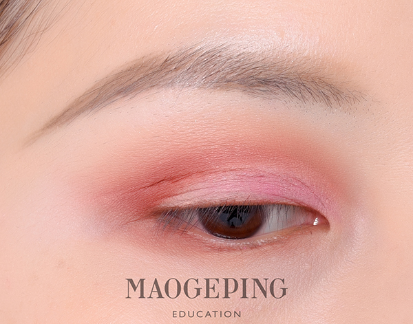 Step 3:接着用棕红色眼影涂在上下睫毛根部,然后向外侧晕染开,形成渐变的效果。