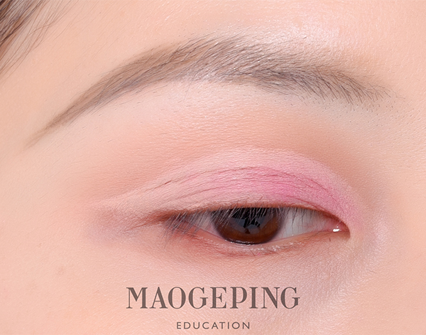 Step 5:上眼皮靠近内眼角的位置用玫红色眼影晕染。