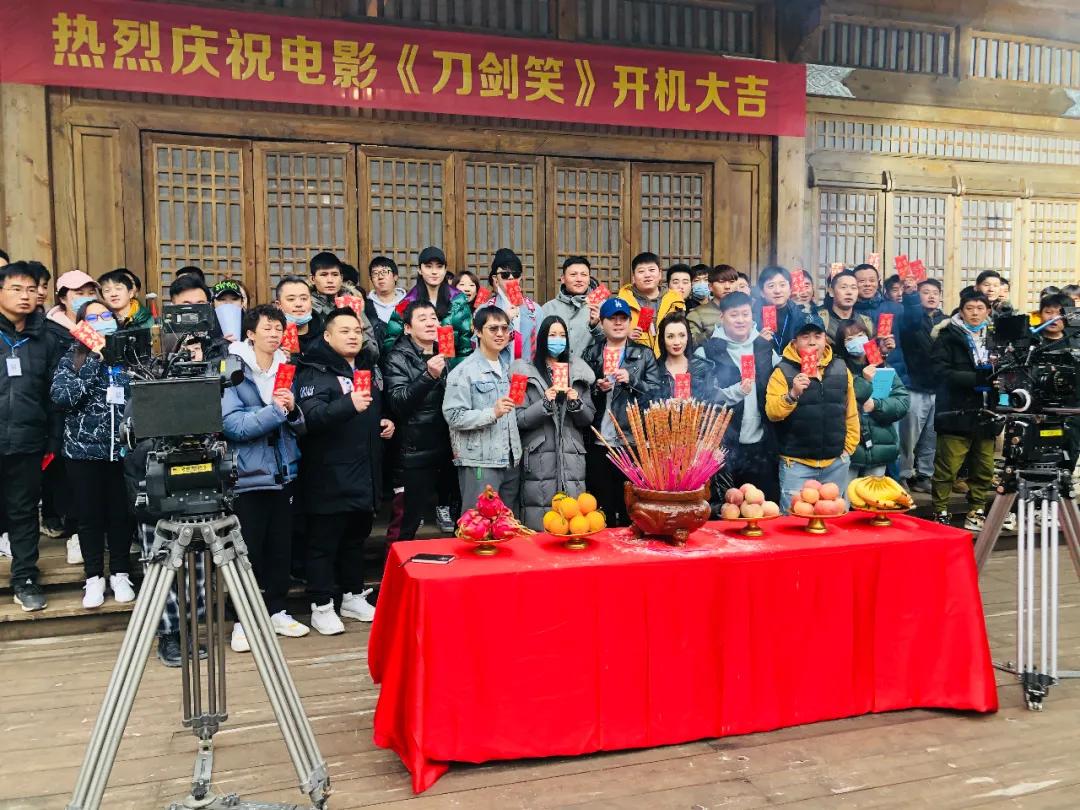 网络电影市场再添武侠爆笑新作品,11月28日,由慈文传媒旗下正视觉出品的古装武侠魔幻喜剧网络电影《刀剑笑》在横店正式开机。慈文传媒旗下正视觉总经理、该剧总制片人高峰,制片人佟禹衡、梁栋,导演贾川及演员陈禹铭、克拉拉、闫佳颖出席开机仪式。