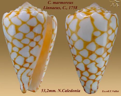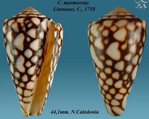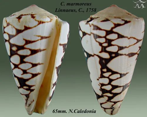 与声名远扬的海之荣光芋螺(C. gloriamaris)和地纹芋螺(a.k.a 杀手芋螺,C. geographus)相比,大理石芋螺并不是一个“出圈”的物种。但其实它在芋螺界的地位不凡,因为它是全世界第一种被正式描述的芋螺(描述者是“分类学之父”卡尔·林奈),也因此成为了芋螺属的模式物种。