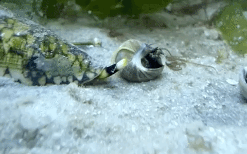 活着的大理石芋螺,正捕食一只雪山宝螺(Monetaria caputserpentis)。| NOAA