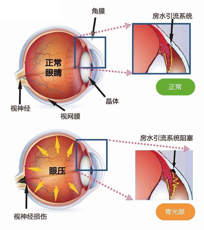 青光眼,是一种由于眼内压升高而引起视乳头凹陷,视野缺损,最后可导致失明的严重眼病。西医临床上分原发性、继发性和先天性三类,原发性青光眼的发病,解剖因素是基本原因,但情绪不稳、过劳、用眼时间过度等均为诱发因素。