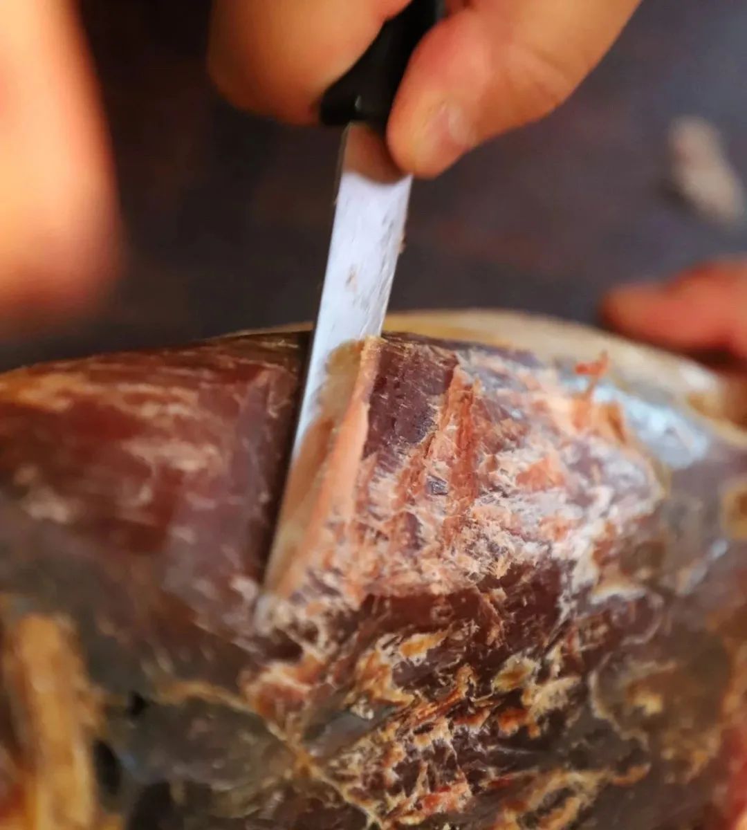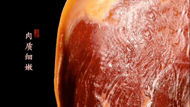 古法传承、时间浸染,历经四季轮回,雪舫蒋火腿经过两年时间的熟成,最终呈现绛红的色泽和独特的鲜香。