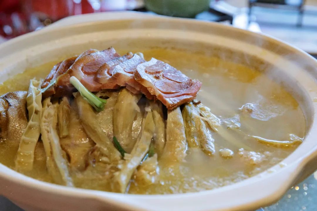 在江浙一带,火腿笋干老鸭煲是一道非常经典的家常菜,将火腿的浓香与老鸭的油嫩慢炖出来的汤汁异常鲜美。