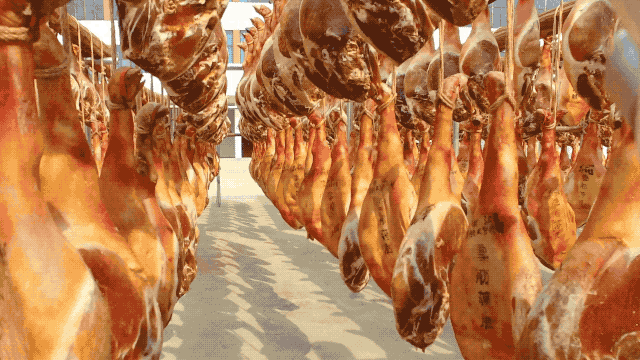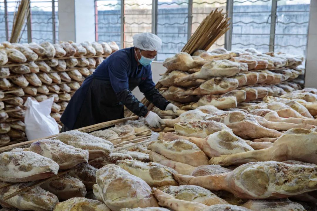 每一条火腿的制作都体现了老师傅对盐、腌制时间的精心把控。