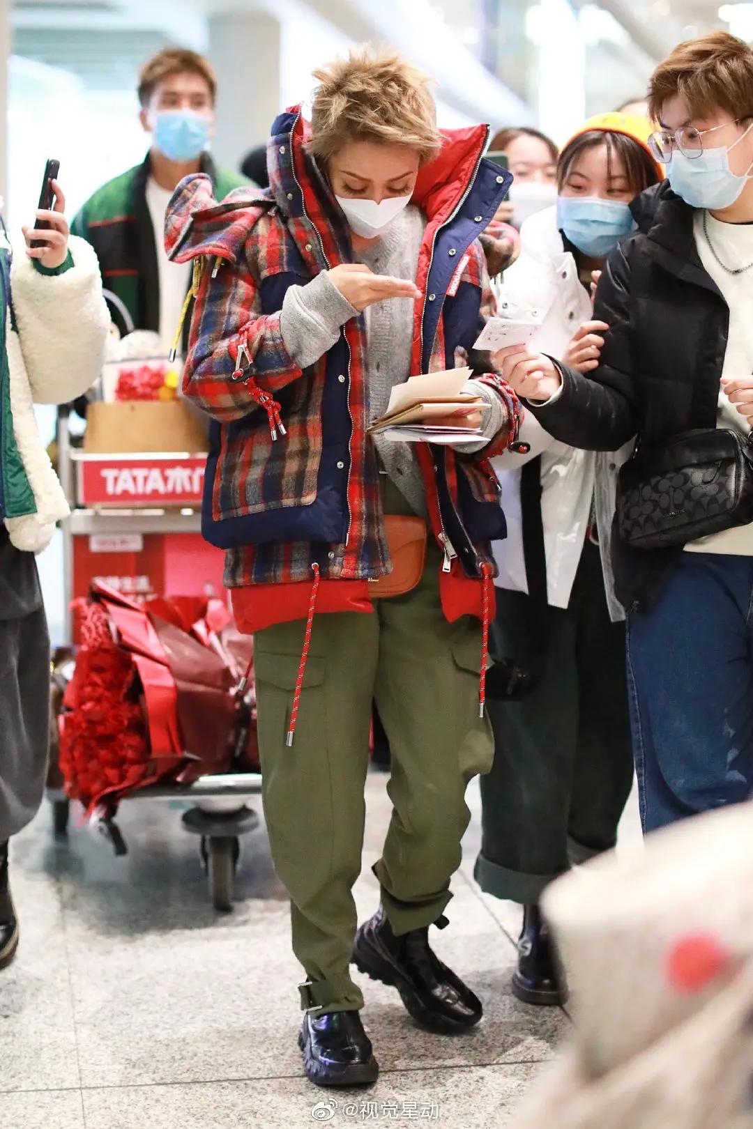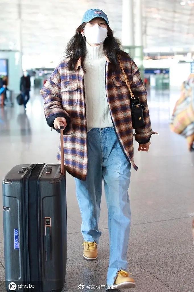 虽然机场都是品牌方送的带货衣服,但这一身配发型也太一言难尽了?