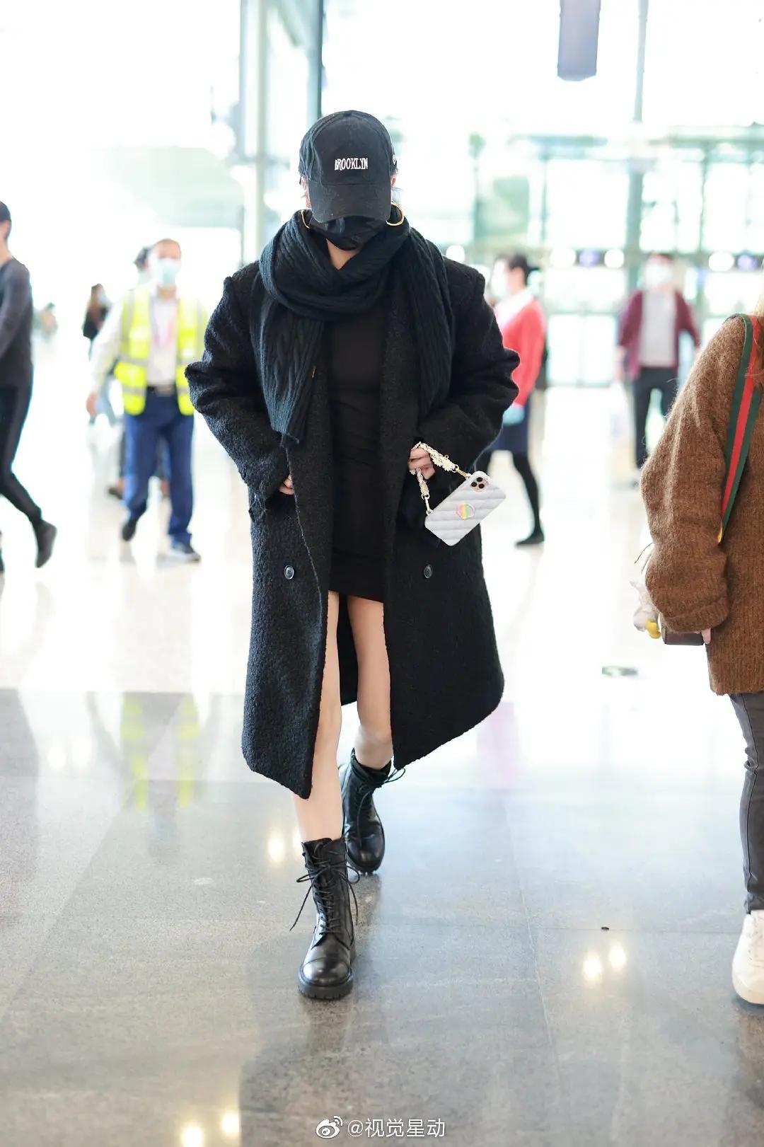 首先是沈梦辰的机场街拍,她穿的好潮,一件黑色毛呢大衣内搭白色打底衫,下装配一条黑色工装裤和马丁靴,帅气利落又时髦。