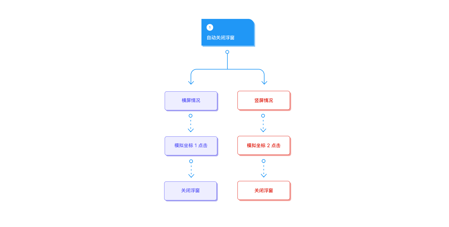因为无法通过修改内置参数直接关闭浮窗,所以曲线救国的方案就是模拟点击屏幕进行关闭。其次,考虑设备在横竖屏期间浮窗的位置存在一定差别,所以需要分情况进行点击。
