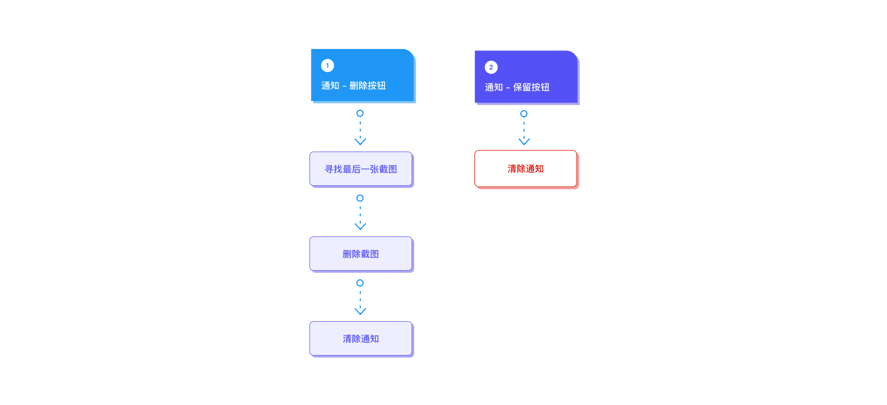 在点击按钮删除截图后,我们有必要额外增加指令对这条通知本身进行清除,否则在我们滑动清除前,这条通知会一直保留在通知栏中,不太符合「用完即走」的理念。