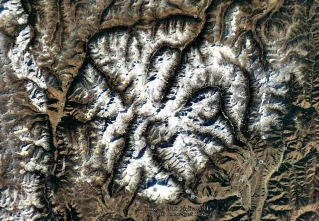 打开谷歌地球,你会发现整个格聂神山犹如一朵雪莲,在川西高原上舒展开来,八瓣花瓣相互依托。