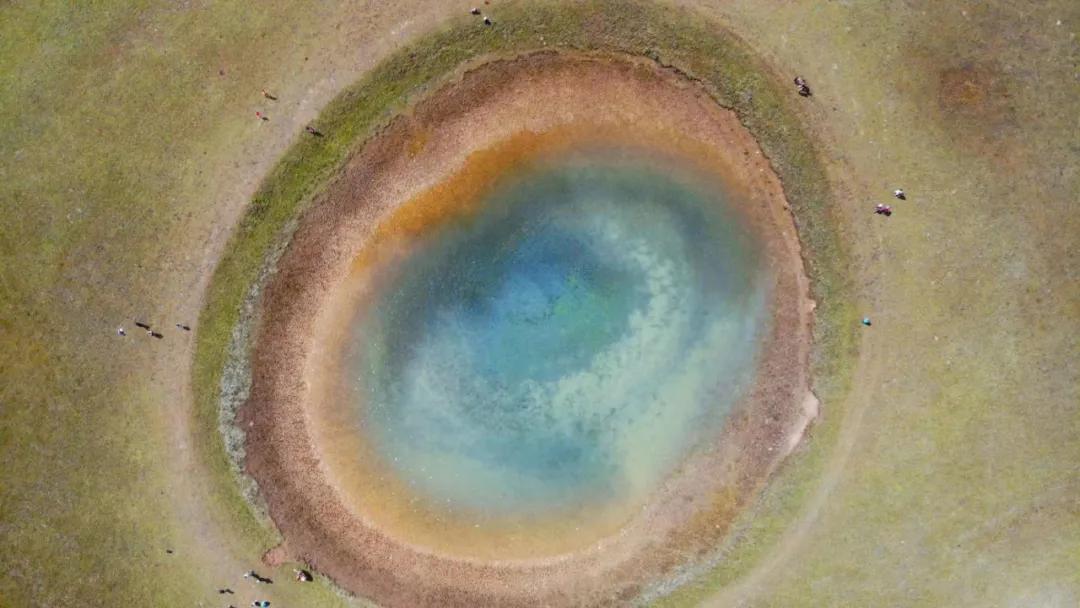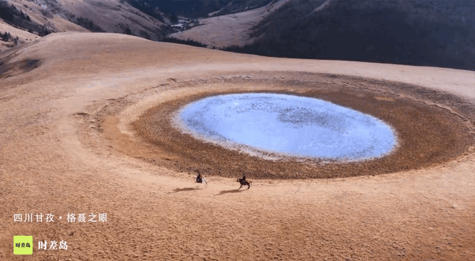 “格聂之眼”其实一个海子。跟其他被山包围着的海子不一样,格聂之眼伫立在相对平坦的草甸上,圆形的湖里长着一圈圈水草,从空中俯瞰,如人的瞳孔般。