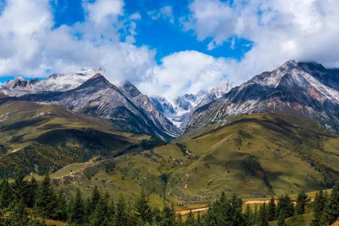 雪山,草原,冰川,寺庙,白塔...